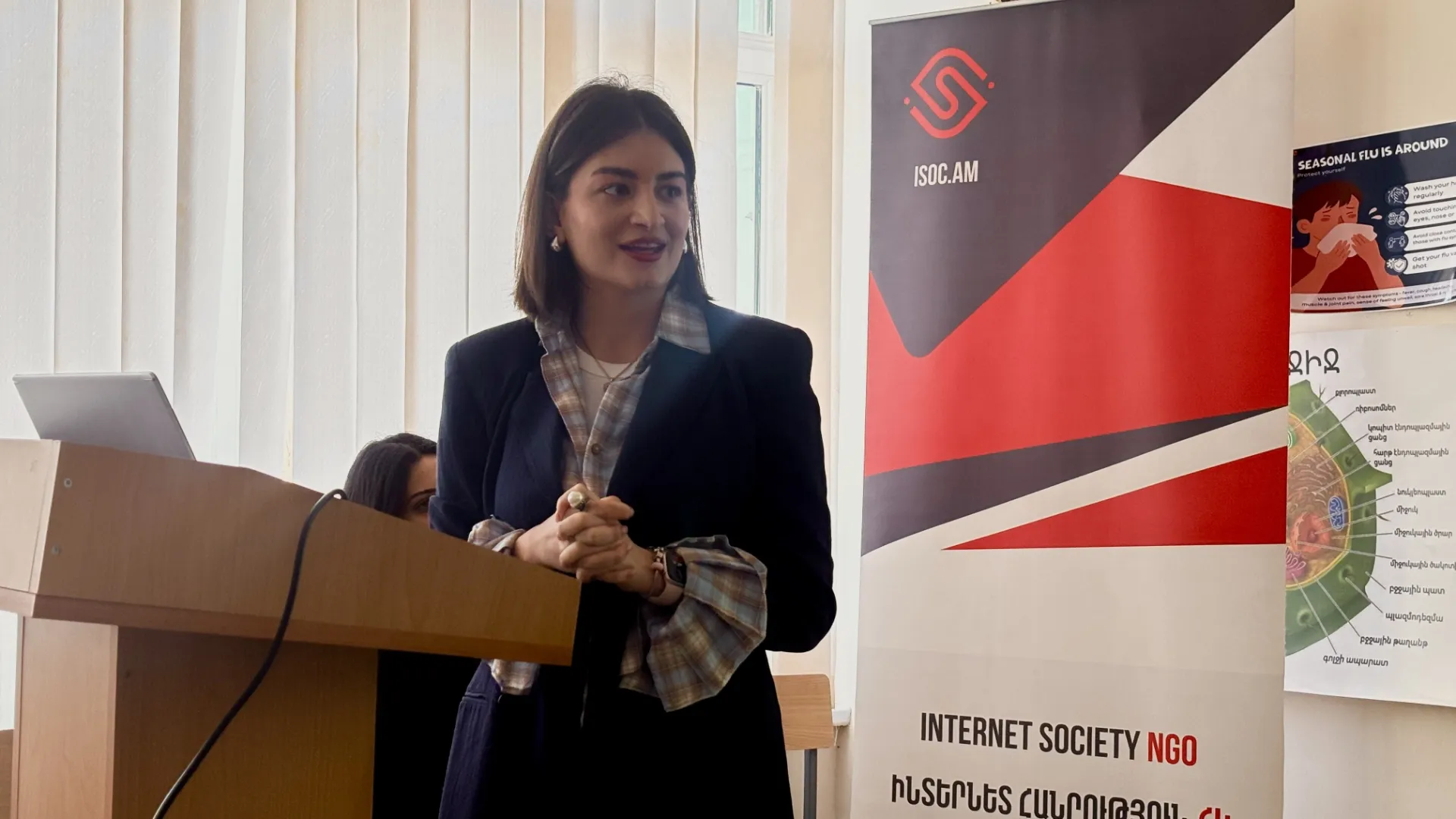 In their opening remarks, Board Vice Chair of the Internet Society NGO Kristina Hakobyan and Board Chair of the Internet Society Armenia Chapter PO Vesmira Harutyunyan highlighted that the event aimed to introduce students to the application of modern technologies in healthcare, while also promoting digital literacy and encouraging the adoption of innovative solutions within professional communities.